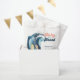 Surf theme baby shower favour bags feature a watercolor big wave, surfboards and starfish on the beach with "Baby On Board' typography in retro cool lettering. The tropical colours (coral, turquoise and navy blue) work great for a boy or girl baby and there are two lines of text that can be personalised. Art by KL Stock