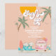 Celebrate your little ones big day with this vibrant surf-themed birthday invitation! Featuring tropical palm trees, ocean waves, a retro pink van, and a colorful sunset, this design captures the fun of a beach party. Perfect for a first birthday or any milestone celebration, it sets the tone for a laid-back, tropical gathering. Personalize with your event details and make your party unforgettable with this playful, retro-inspired invite.