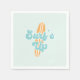 Surf's Up! Surfing Beach Birthday party napkins with turquoise and orange surf board.