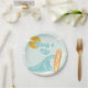 Surfs UP! Surfing Beach Birthday party plates with turquoise waves and orange surf board.
