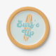 Surf's Up! Surfing Beach Birthday party plates with turquoise and orange surf board.