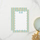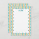 The front of the card shows your monogram with a border of wavey vertical lines that are teal and orange. The back features the same teal and orange pattern. These teal and orange lines are designed after the way waves wash to shore.