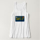 Travel back in time to the year 1969 with this retro-inspired California license plate design. Bold embossed-look yellow text with the custom tag number "SURFS UP" pops on the blue contrast. The vintage style lettering, tag stickers and panhead screws bring a nostalgic vibe. This scoop neck tank top is the perfect casual statement piece for surf sessions, late beach days, weekend adventures, and everyday coastal life.