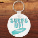 Teal text that reads "Surfs Up" and a surfboard design on surfing T-shirts, hoodies, tank tops, mugs, cards, stickers, beach tote bags, and other items surfers will love!