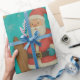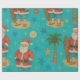 Santa takes a tropical twist on Christmas in this vibrant design, featuring him in flip-flops with his surfboard in hand, surrounded by palm trees, seashells, and starfish. Set against a cheerful aqua background, this pattern blends the warmth of the holidays with the laid-back charm of a beach getaway. Perfect for coastal Christmas wrapping, décor, or festive crafting projects that celebrate seaside style.