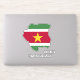 Suriname Flag Map Sticker in the outline of the Suriname map. The map is infused with the pattern and the colours from the Suriname national flag. Small stickers with the country name are also included. Text is fully customisable using "Customise it!" feature. Suriname map sticker is the perfect sticky gift that can be placed anywhere your heart desire. © 2021 CoutriesOfTheWorld