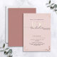 This beautiful invitation features hand lettered calligraphy artfully presenting 'one hundred' in luxurious hand lettering against a pink background, adorned with delicate swirls in the corners top and bottom in real rose gold foil, along with the name and the number 100. This image will have all your guests excitedly anticipating your fabulous one hundredth festivities!