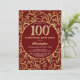 Surprise 100th Birthday Burgundy Red & Gold Floral Invitation