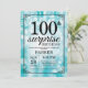 Surprise 100th Birthday Invitation with Teal String Lights with Teal Glitter Background. Teal Birthday. Adult Birthday. Men or Women Bday Invite. 13th 15th 16th 18th 20th 21st 30th 40th 50th 60th 70th 80th 90th 100th, Any age. For further customisation, please click the "Customise it" button and use our design tool to modify this template.