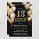 Surprise 13th Birthday Black and Gold Balloons Invitation