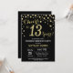 Surprise 13th Birthday Black and Gold Diamond Invitation