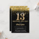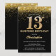 Surprise 13th Birthday Black and Gold Glitter Invitation