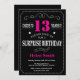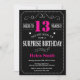 Surprise 13th Birthday Hot Pink and Black Invitation