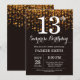 Surprise 13th Birthday Invitation with Gold String Lights with Gold Glitter Background. Gold Birthday. Kids Birthday. Boy or Girl Bday Invite. 13th 15th 16th 18th 20th 21st 30th 40th 50th 60th 70th 80th 90th 100th, Any age. For further customisation, please click the "Customise it" button and use our design tool to modify this template.