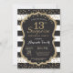 Surprise 13th Birthday Invitation for women or man. Black and Gold Birthday Party Invite. Gold Glitter Confetti. Black and White Stripes. Printable Digital. For further customisation, please click the "Customise it" button and use our design tool to modify this template.