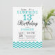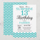 Surprise 13th Birthday Invitation with Teal Chevron. Black and White. Kids Birthday. Boy or Girl Bday Invite. For further customisation, please click the "Customise it" button and use our design tool to modify this template.