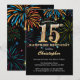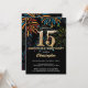 Surprise 15th Birthday Black Gold Rainbow Firework Invitation