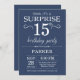 Surprise 15th Birthday Invitation with Blue Background. Kids Birthday. Boy or Girl Bday Invite. 13th 15th 16th 18th 20th 21st 30th 40th 50th 60th 70th 80th 90th 100th, Any age. For further customisation, please click the "Customise it" button and use our design tool to modify this template.