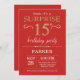 Surprise 15th Birthday Invitation with Red and Gold Glitter Background. Kids Birthday. Boy or Girl Lady Teen Teenage Bday Invite. Any age. For further customisation, please click the "Customise it" button and use our design tool to modify this template.