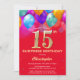 Surprise 15th Birthday Red and Gold Colourful Balloons and Confetti Invitation. For further customisation, please click the "Customise it" button and use our design tool to modify this template.