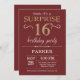 Surprise 16th Birthday Burgundy and Gold Glitter Invitation