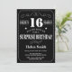 Surprise 16th Birthday Invitation Chalkboard. Black and White Background. Adult Birthday. Male Men or Women Birthday. Kids Boy or Girl Lady Teen Teenage Bday Invite. 13th 15th 16th 18th 20th 21st 30th 40th 50th 60th 70th 80th 90th 100th. Any Age. For further customisation, please click the "Customise it" button and use our design tool to modify this template.