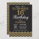Surprise 16th Birthday Invitation with Gold Glitter Chevron. Chalkboard. Black and Gold Glitter. Kids Birthday. Boy or Girl Bday Invite. For further customisation, please click the "Customise it" button and use our design tool to modify this template.