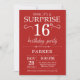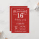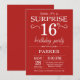 Surprise 16th Birthday Invitation with Red Background. Kids Birthday. Boy or Girl Bday Invite. 13th 15th 16th 18th 20th 21st 30th 40th 50th 60th 70th 80th 90th 100th, Any age. For further customisation, please click the "Customise it" button and use our design tool to modify this template.