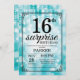 Surprise 16th Birthday Invitation with Teal String Lights with Teal Glitter Background. Teal Birthday. Kids Birthday. Boy or Girl Bday Invite. 13th 15th 16th 18th 20th 21st 30th 40th 50th 60th 70th 80th 90th 100th, Any age. For further customisation, please click the "Customise it" button and use our design tool to modify this template.