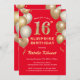 Surprise 16th Birthday Red and Gold Balloons Invitation