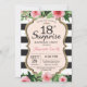 Surprise 18th Birthday Invitation for Women. Black and Gold Birthday Party Invite. Gold Glitter. Pink Watercolor Floral Flower. Black and White Stripes. Printable Digital. For further customisation, please click the "Customise it" button and use our design tool to modify this template.
