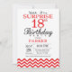 Surprise 18th Birthday Invitation with Red Chevron. Black and White. Adult Birthday. Man or Women Bday Invite. For further customisation, please click the "Customise it" button and use our design tool to modify this template.