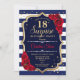 Feminine navy blue, white, red design with faux glitter gold. Features navy and white stripes, red roses, script font and confetti. Perfect for an elegant birthday party. Can be personalized to show any age. Message me if you need further customization.