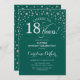 Elegant design in emerald green and faux glitter silver. Features script font and diamonds confetti. Cheers to 18 Years! Message me if you need further customization.