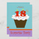 This fun surprise 18th birthday party invitation features a chocolate cupcake with colourful confetti and number 1-8 candles in red on an aqua background. The birthday guy or gals name appears above the cupcake. On the bottom on a lavender background are the words "Surprise Party." The back of the invitation says "Shhh!" along the bottom and features the party details. A great invitation for an 18th surprise birthday party. Copyright henishouseofpaper
