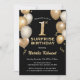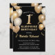 Surprise 1st Birthday Black and Gold Balloons Invitation