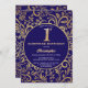 Surprise 1st Birthday Navy Blue and Gold Floral Invitation