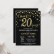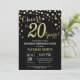 Surprise 20th Birthday Black and Gold Diamond Invitation