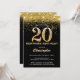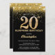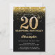 Surprise 20th Birthday Black and Gold Glitter Invitation