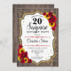 Feminine rustic black, white, red design with faux glitter gold. Features wood pattern, red roses, sunflowers, script font and confetti. Perfect for an elegant birthday party. Can be personalized to show any age. Message me if you need further customization.