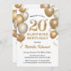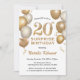 Surprise 20th Birthday White and Gold Balloons Invitation