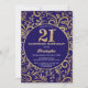 Surprise 21st Birthday Navy Blue and Gold Floral Invitation