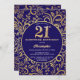 Surprise 21st Birthday Navy Blue and Gold Floral Pattern Birthday Invitation. For further customisation, please click the "Customise it" button and use our design tool to modify this template.