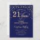 Elegant design in navy blue and faux glitter gold. Features script font and diamonds confetti. Cheers to 21 Years! Message me if you need further customization.