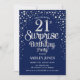 Surprise 21st Birthday Party - Silver & Navy Blue Invitation