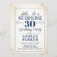 Simple classy design in white, navy blue and black. Features elegant script font. Surprise bday celebration for man or woman. Can be customized into any age!