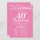 Surprise 40th Birthday Invitation with String Lights. Pink Background. Women Female Lady Elegant Modern bday. 13th 15th 16th 18th 20th 21st 30th 40th 50th 60th 70th 80th 90th 100th, Any age. For further customisation, please click the "Customise it" button and use our design tool to modify this template.