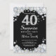 Surprise 40th Birthday Invitation. Silver Rhinestone Diamond Chalkboard Background. Elegant Birthday Bash invite. Black and White. Adult Birthday. Women Birthday. Men Birthday. For further customisation, please click the "Customise it" button and use our design tool to modify this template.