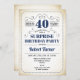 Surprise 40th Birthday - Navy Blue White Black Invitation