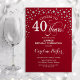 Elegant design in dark red and faux glitter silver. Features script font and diamonds confetti. Cheers to 40 Years! Message me if you need further customization.